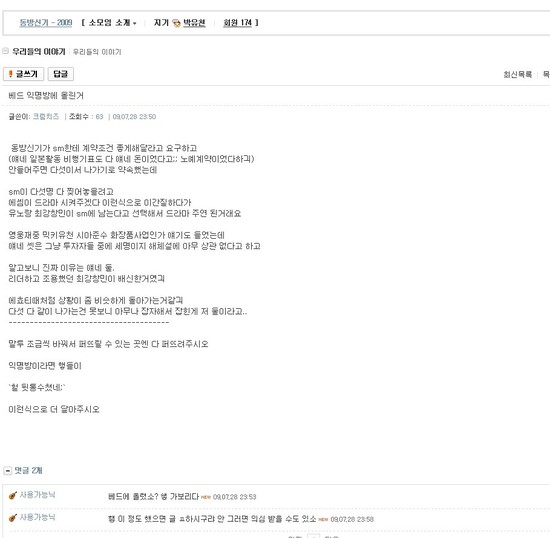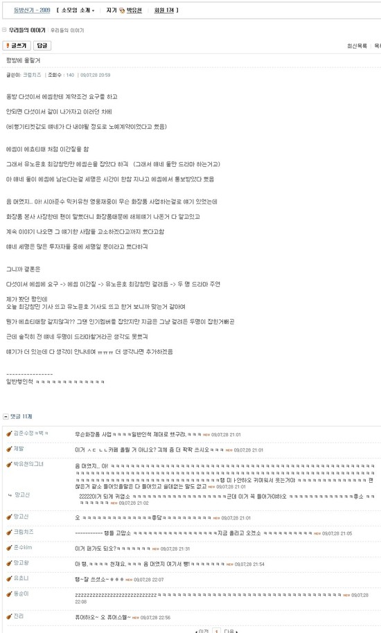 ‘東方神起の周辺人は解散を助長するな’ と言う内容で書かれてたフォーエバーのポスティングがイグルーに載せられた。 포에버 원문 캡쳐 - ‘東方神起解散’ 記事が載せられ始め。 |