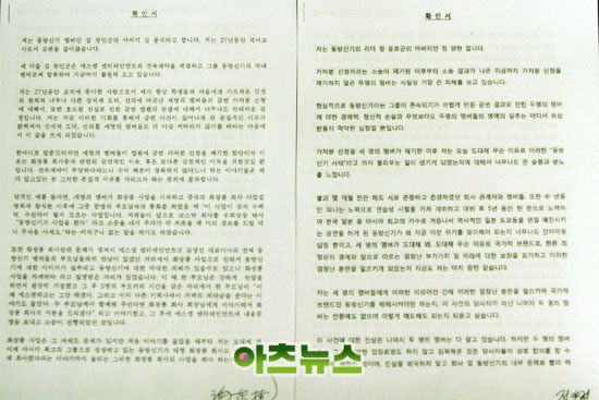 ※ 최강창민 아버님, 유노윤호 아버님의 확인서